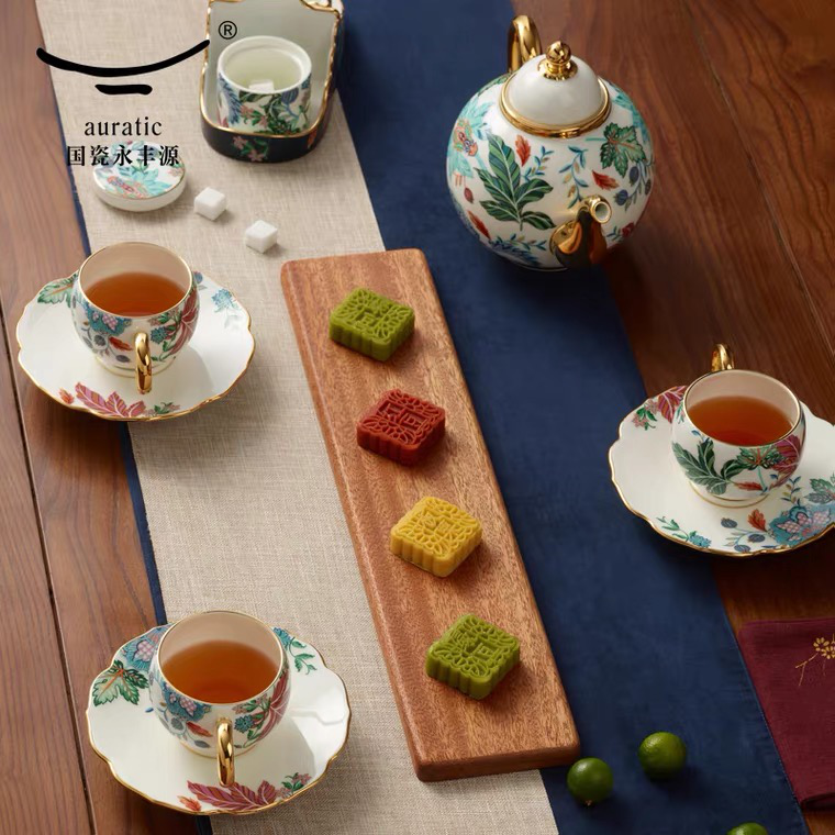 • 国瓷永丰源中秋礼 幸福满园18头茶咖具 陶瓷家用茶具(不含木架)