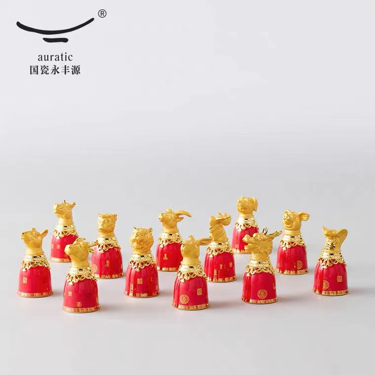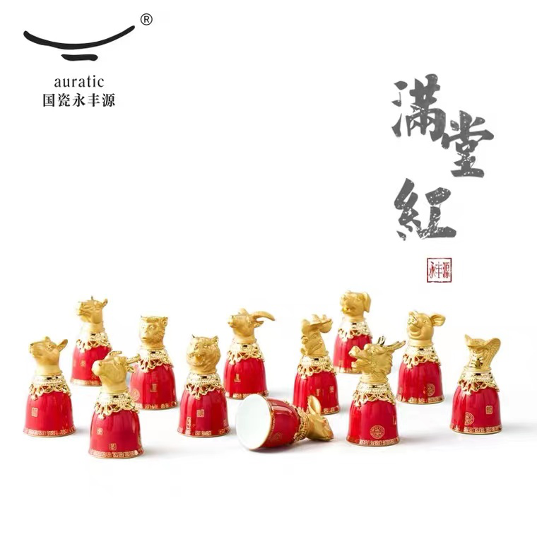 • 国瓷永丰源 满堂红十二生肖烈酒杯12兽首陶瓷酒具套装 骨瓷白酒杯
